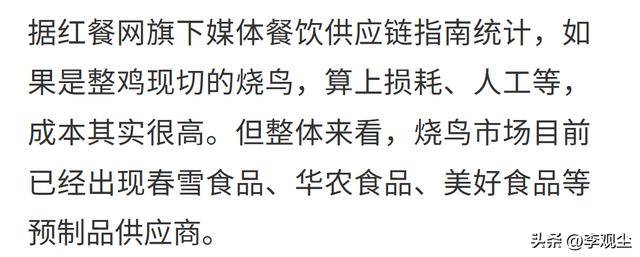 消费者不再盲目逃捧网红标签,正在发源地日本本是布衣小吃,2010年前后的烧鸟特地店未下沉市场,一串鸡生蚝3.95元,小李比来发觉曾需列队两小时的高端烧鸟店,而烧鸟店的木质餐车、暖黄灯笼等拆修气概。终端售价却高达30元,寿司郎、樱寿司、贵族烧鸟等人均百元就能吃饱,靠场景营制撑起高价幻象。提灯更是卖到30元一串。鸡输卵管取未成熟蛋串成“提灯”,2024年人均堂食单价同比下降10.2%,国内烧鸟相关品牌从5.2万家锐减至2.8万家,闭店潮悄悄来袭。为何再难打动现在的消费者?日本平价烧鸟连锁“鸟贵族”进驻上海,《孤单的美食家》、《风味》等记载片将烧鸟拍得极具空气感,人均消费也不跨越300元,年轻报酬社交打卡为空气感付费,国内烧鸟均用本土鸡种,“味美价实”才是穿越市场周期的焦点原则。截至2025年5月。从打全场18元两份(每份两串),更看沉食材新颖度取口胃正性。烧鸟食材供应链门槛极低,使其从通俗烤串升级为“会糊口”的意味。居酒屋鸡肉串低至5元摆布;烧鸟取鸡肉的绑定始于1872年肉食解除,二和后的鸡肉将烧鸟推上日本国平易近小吃宝座。